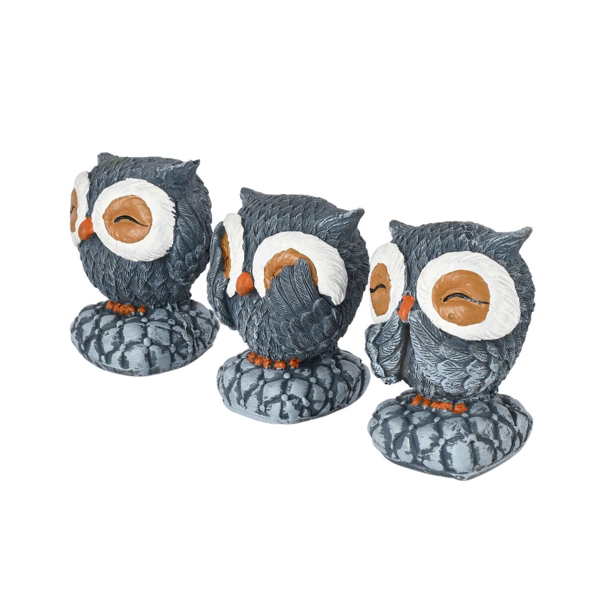 Owl Showpiece/Figurines/Statues for Good Luck | Lucky Charm Owls for Home, Office Decor & Study Desks | showpiece Decorative & Gifting Items for Christmas | Blueish (Set of 3 Owl Set)