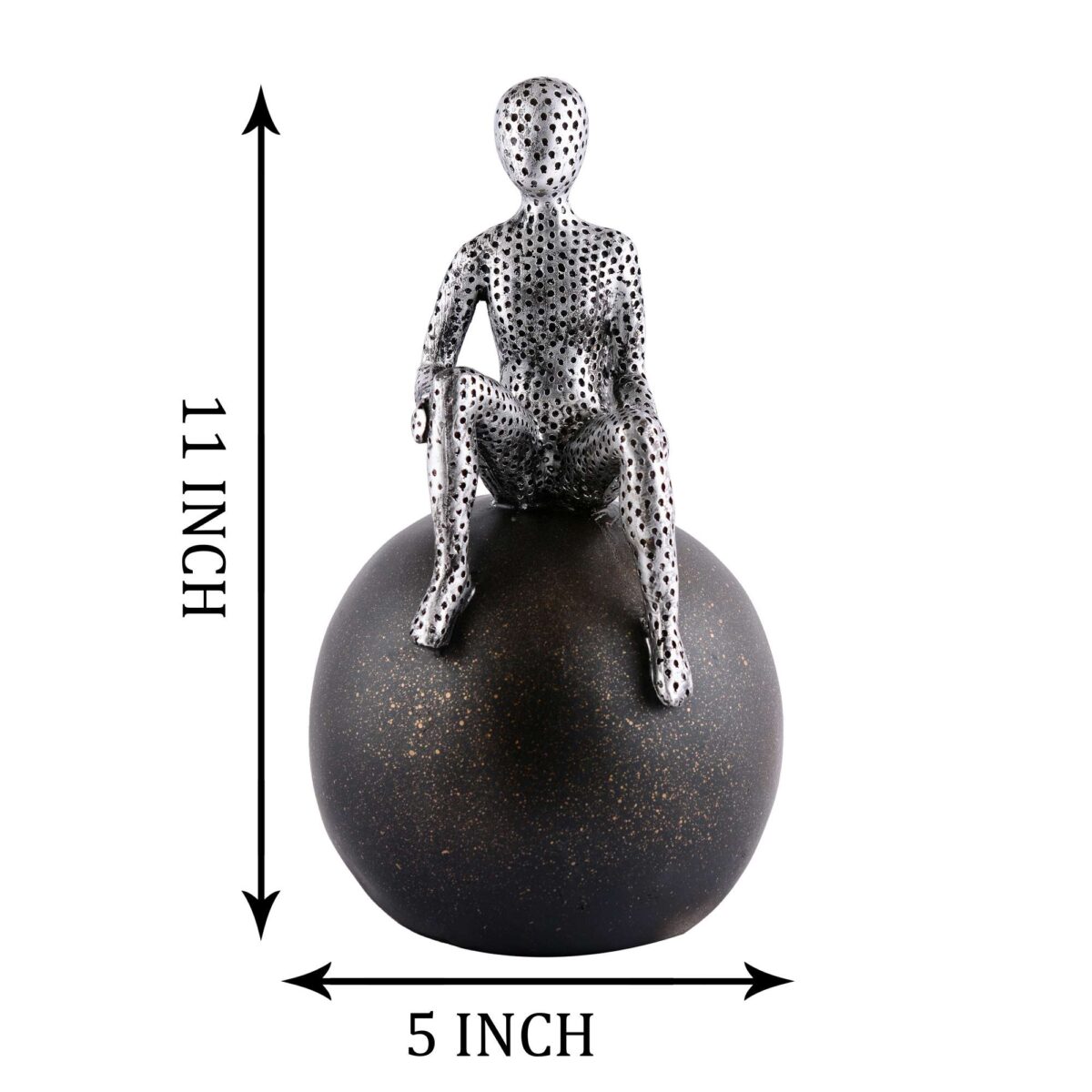 Men Sitting on Ball Showpiece for Home Decor Showpiece, Atlas Sculpture for Office Table Décor multicolour