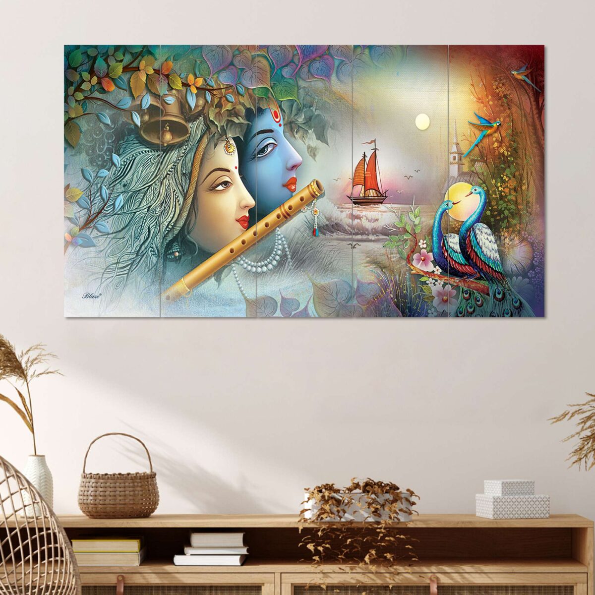 Saumic Craft Presents This Set Of 5 Amazing Paintings For Your Wall . The Painting Will Completely Change The Atmosphere Of The Room Whire It is Placed . The Paintimg Is Made On Heavy Wooden Board And Has A Digital UV Coating On It Which MAKES It Very Easy To Clean . Pricing Of The Product Is Made Very Reasonable From Our Brand As Per The Quality We Are Providing To Our Customers, We Assure That You Will Not Regret Your Purchase, Saumic Craft Is Well Known for Its After Sale Services And In Case If You Feel Some Problem With Any Of Our Product Than You Can Replace It For Free With No Additional Cost . This painting offers a stylish look to your wall as this piece includes three themes it is vastu and also have the essence of abstract and modern art which makes this peice unique and stylish . The 5 pieces wall painting is made with high-quality material, the HD quality print looks fantastic and bright it will not fade easily. With just few simple steps you can mount it to the wall. Thank You For Yor Purchase